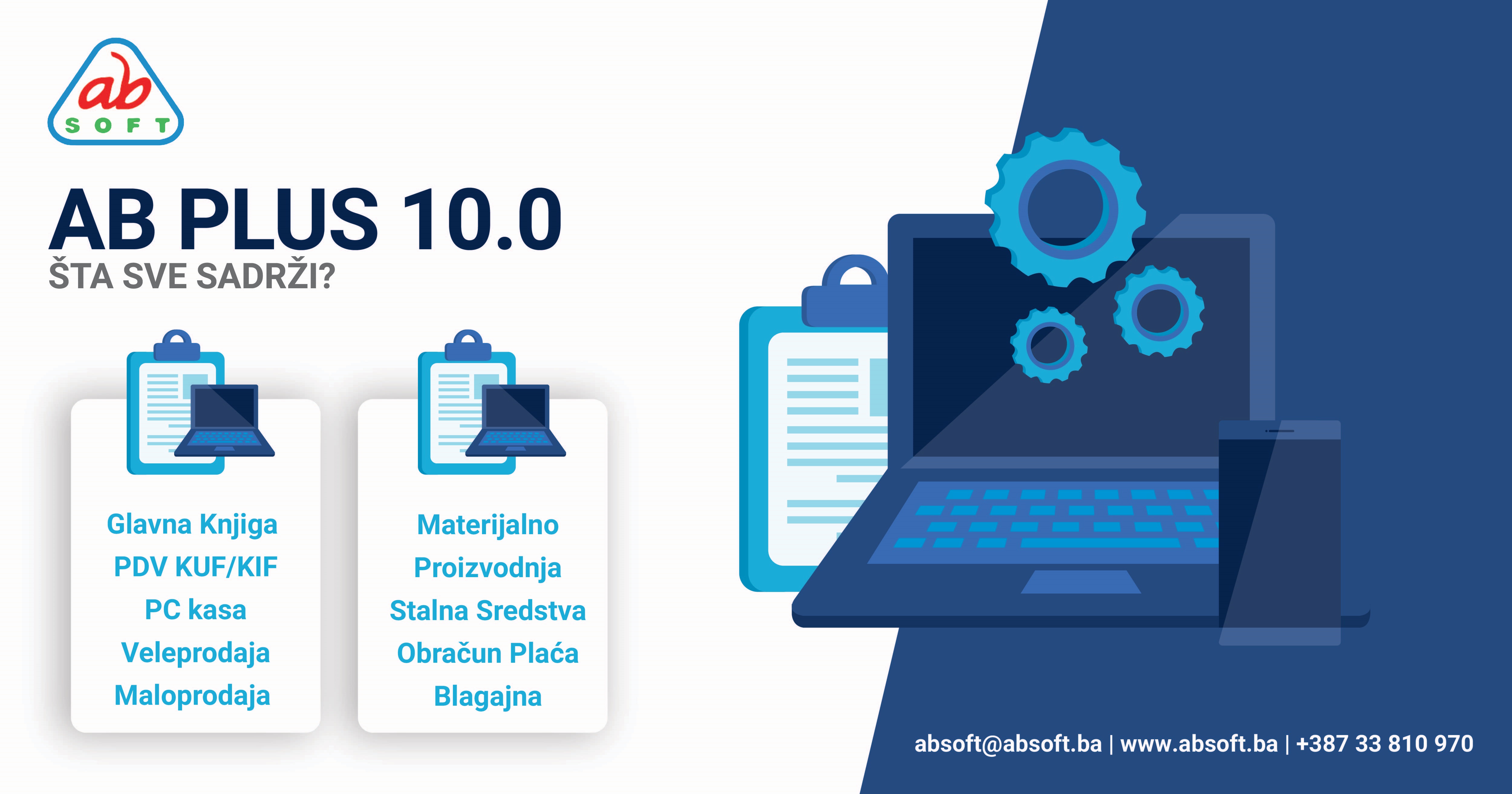 Svi korisnici koji kupe AB PLUS će dobiti besplatan Update programa kod promjene poreskog sistema i zakonskih promjena. (Npr. Plaće itd)