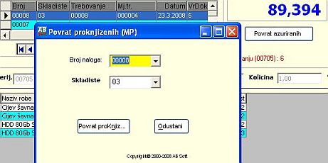 Komandno dugme "Povrat proknjizenog naloga" je namjenjeno da se željeni nalog povrati u neazurirane naloge. Klikom na dugme "Povrat proknjizenog naloga" pojavi se meni za povrat azuriranog naloga na kojem je odabran selektovani nalog sa forme "Proknjizeni nalozi" ili sami odaberemo drugi nalog izborom sa padajuceg menija "Broj naloga", a zatim kliknemo na dugme "Povrat proknjizenog naloga " ili tipkama ALT+K.
