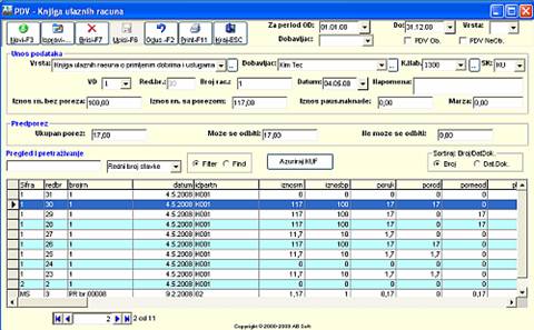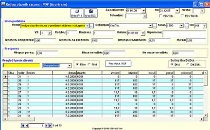 Ovo je pomocna knjiga za pracenje ulaznih fakrura od Dobavljaca.