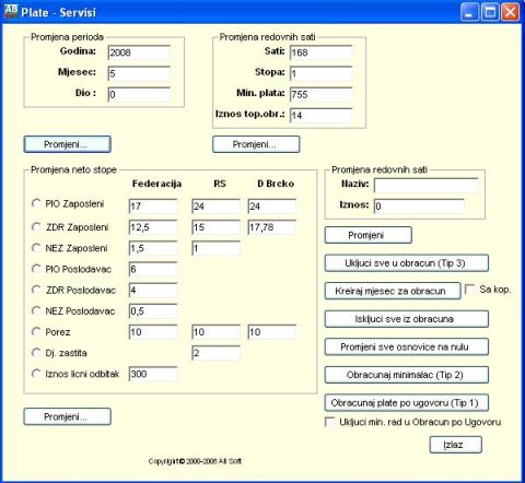 Preko servisa takoder možete mjenjati razne parametre kod obracuna. Nakon što se unjeli podatke za sve zaposlene, kliknite na opciju Printaj kako bi ste dobili kontrolni izvještaj. Podaci o obracunu ce ostati nepromjenjeni, da bi vam bilo lakše obracunati place za sljedeci mjesec (sljedeci mjesec bi preko servisa promjenili period i eventualne razlike od prethodnog mjeseca i brzo završili obracun).