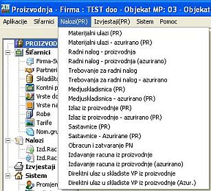 Do podmenija "NALOZI" dolazi se preko glavnog menija. Željeni unos podataka se poziva izborom istog sa padajuce liste podmenija "NALOZI".