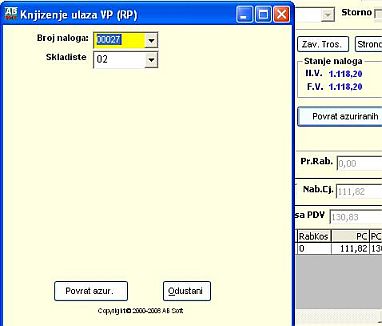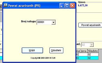 Povrat azuriranog naloga se moze vrsiti i sa padajuceg menija "Povrat azuriranog naloga", a postupak je isti kao predhodni.