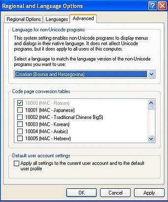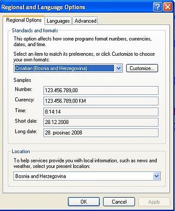 1. Što se tiče fontova imate i tri slike za postavke Regional Option i samo isto uradite na Vašem računar, kako slijedi po slikama (Slika 1, Slika 2 i Slika 3).
