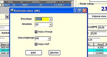 Komandno dugme "Knjiženje naloga" je namjenjeno da se željeni nalog ažurira. Klikom na dugme "Knjiženje naloga" pojavi se meni za azuriranje naloga na kojem je odabran selektovani nalog sa forme "Neproknjizeni nalozi" ili sami odaberemo dtugi nalog izborom sa padajuceg menija "Broj naloga", a zatim kliknemo na dugme "Knjizi" ili tipkamaALT+K.