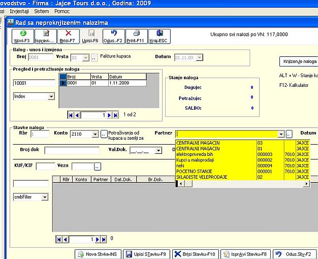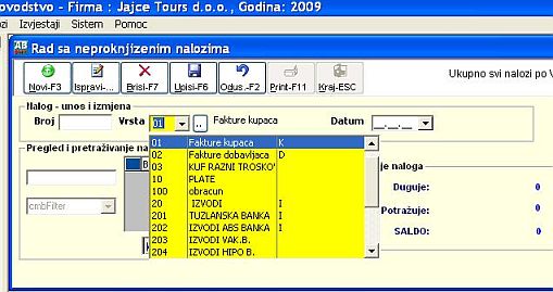 Evo u slikama unos naloga kontiranja slika 1. F3 i unesemo vrstu naloga "01" i zatim datum "01.11.09"